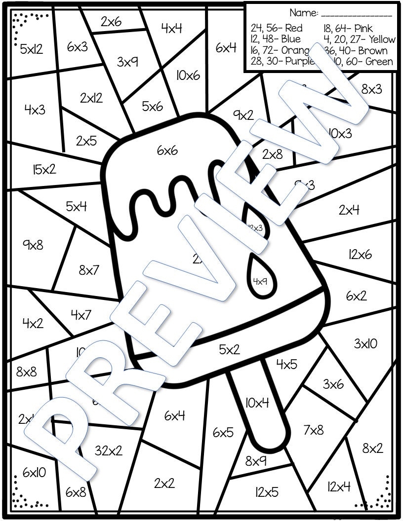 Summer Color By Number Summer Math Multiplication 3rd Grade Math Multiplication Practice Multiply And Color Division Etsy